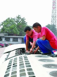 “人少車多任務(wù)重”——隨著空調(diào)公交車的不斷增加,僅有六七人的空調(diào)維修小組需維修、維護車輛,少則十一二部,多則近二十部,平均每人每天需負責少則兩部多則三部車的檢修、修理工作。其中既包括了添加制冷劑等維護,也包括了費時費力的電路維修、更換配件工作。這樣的工作量讓8小時以外的加班加點成了修理人員的常態(tài)??赡呐略傩量?,每天下班前,只要有原料、配件,他們都會堅持修好最后一輛車才下班——“如果不能盡快完成修理,乘客們在這么熱的天坐車太難受了,既然車上有空調(diào),就是再熱再累也得修好。”
