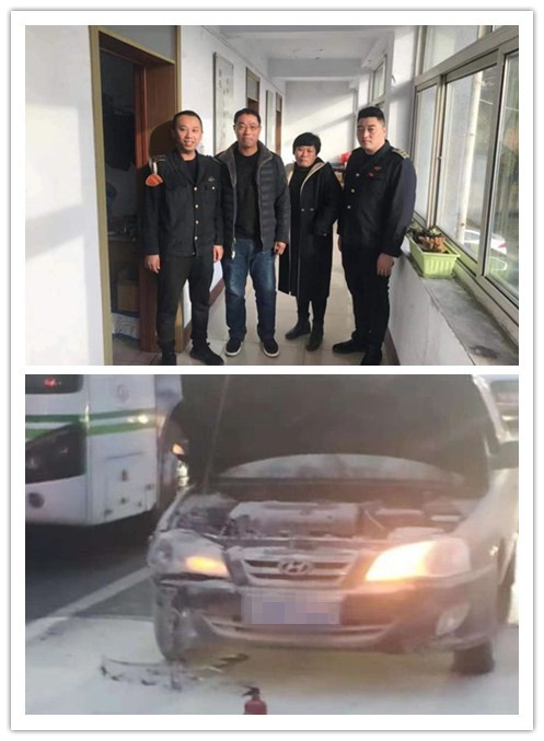 11月27日,16時(shí)50分許,三公司四隊(duì)駕駛員吳春豐駕駛56路2568公交車(chē)由唐山站駛往銀河路車(chē)場(chǎng)方向,行駛至長(zhǎng)寧道華巖路交叉口等信號(hào)時(shí),發(fā)現(xiàn)同向的一輛黑色私家車(chē)變綠燈后沒(méi)有正常起步,并且引擎處還冒起了陣陣黑煙,火苗也隨之竄出車(chē)外,現(xiàn)場(chǎng)情況十分危急。