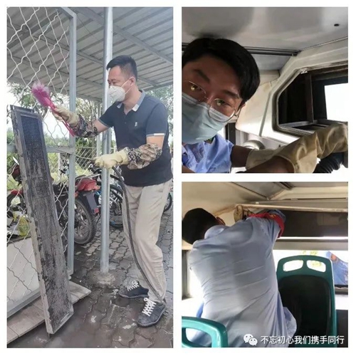 三隊(duì)在車輛衛(wèi)生管理方面一直是五公司的標(biāo)兵,不僅起到了帶頭示范的作用,還是發(fā)現(xiàn)問題、解決問題最多的路隊(duì)。衛(wèi)生清理過程中,三隊(duì)發(fā)現(xiàn)位于公交車內(nèi)部最后方電子顯示屏是車輛衛(wèi)生區(qū)死角,于是,精益求精的他們?cè)趯?shí)驗(yàn)了眾多方法后,發(fā)現(xiàn)了利用小型手槍鉆配合氣泵這個(gè)方法很實(shí)用。小型手槍鉆起到快速拆卸電子屏的作用,對(duì)比扳手、螺絲刀等工具更加節(jié)約時(shí)間,氣泵吹出的帶有壓力的氣體則有效解決因電子顯示屏屏面凹凸不平、且有縫隙的衛(wèi)生污垢清理問題。這樣的好處是既避免了用水清理電子設(shè)備造成不必要的損壞又能讓公交車的灰塵“釜底抽薪”。另外,針對(duì)個(gè)別公交車駕駛室配電箱出現(xiàn)爆漆問題,三隊(duì)“廢物利用”用廣告紙對(duì)其進(jìn)行粘貼,在節(jié)省資金的同時(shí)達(dá)到了公交車內(nèi)外整體美化的效果。
