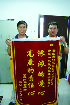 9月1日上午,鄭先生特意制作了兩面錦旗,來到豐潤區(qū)車場分別對物業(yè)站職工拾金不昧、豐潤公司職工樂于助人、熱情服務表示感謝。鄭先生說:“我要為咱們公交職工的愛心與熱心點贊,你們太熱心,太熱情了。昨天我來車場時先后接觸了司機、路隊長、保安、物業(yè)站長和保潔員幾個崗位的工作人員,他們每個人都非常熱情、充滿愛心,更是樂于助人,言行中處處充滿著正能量,真的令我很感動!”