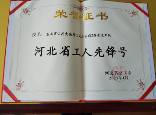 2023年4月28日,河北省總工會(huì)授予唐山公交總公司46路駕駛員翟澤明河北省五一勞動(dòng)獎(jiǎng)?wù)拢谟杼粕焦豢偣?span style="padding:0px">2路營(yíng)運(yùn)車(chē)隊(duì)河北省工人先鋒號(hào)。