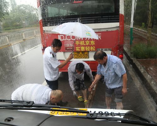 12時(shí)30分,207路車在行至開平路段時(shí)出現(xiàn)故障。機(jī)務(wù)隊(duì)長張繼民立即開著拖車前往現(xiàn)場,不料返回途中拖車也壞了,得知情況的隊(duì)長立即與修理車間聯(lián)系,又派出安全員孫濤、張利明和修理工王金偉火速趕赴現(xiàn)場冒雨搶修,直至晚上六點(diǎn)多,故障車和拖車才順利返回車場,而參與搶修的幾名工作人員早已經(jīng)全身濕透。
