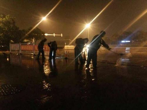 23時(shí)43分,很多人已進(jìn)入了夢鄉(xiāng),此時(shí)公交場站的工作人員正在清理加油站積水,凌晨雨勢漸弱他們才放心收隊(duì)。