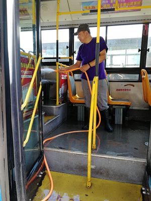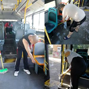 下午,路隊和分公司管理人員都來到路線,同保潔員一起清潔車廂內外,清理衛(wèi)生死角。