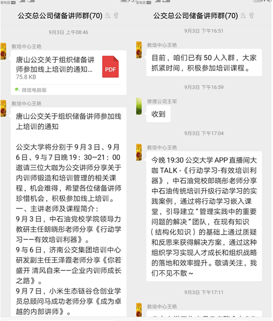 結(jié)合當(dāng)前疫情防控形勢(shì)及總公司儲(chǔ)備講師培養(yǎng)需求,總公司教培中心積極轉(zhuǎn)變工作思路,多次與公交大學(xué)及公交同行對(duì)接,經(jīng)過(guò)前期精心籌備,分別于9月3日、9月6日、9月7日晚19:30-21:00組織總公司儲(chǔ)備講師參加了公交大學(xué)關(guān)于“講師技術(shù)和講師成長(zhǎng)”相關(guān)的三場(chǎng)免費(fèi)在線直播培訓(xùn)課程。
