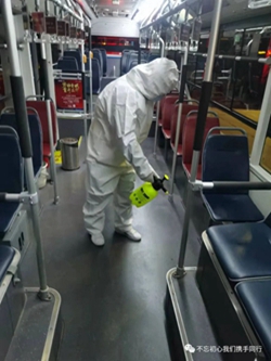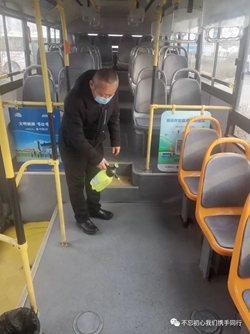 3月22日一大早,伴隨著“轟轟”的發(fā)動機聲,118路司機竇玉海將韓城李莊子車場內停駛的30部公交車一一“喚醒”。“車輛長期停駛,電瓶容易虧電,會導致車輛打不著火,所以隔幾天就要啟動一次。”啟動完車輛后,竇玉海又馬不停蹄地對車輛技術狀況、車載安全設施正常使用情況進行了認認真真的逐車檢查。一通忙碌下來將近三個小時,此時他又踱步在場區(qū)的角角落落開始了消殺工作。