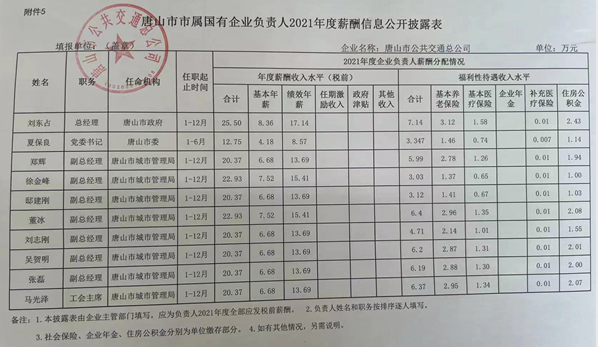 唐山市市屬國有企業(yè)負責人2021年薪酬信息公開批露表