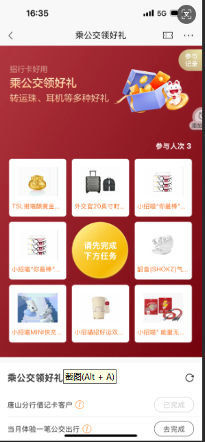 參與路徑:招商銀行App-首頁-城市服務(唐山專區(qū))-公交出行