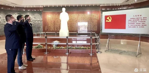 當(dāng)大家踏上象征李大釗革命生涯的38級(jí)臺(tái)階,走進(jìn)紀(jì)念館,步入威嚴(yán)、莊重的紀(jì)念館大廳,在李大釗塑像前整齊列隊(duì)、莊嚴(yán)肅立,集體默哀深深鞠躬,表達(dá)緬懷和敬意。之后,面對(duì)鮮紅的黨旗,唐山公交基層黨支部書(shū)記帶領(lǐng)兩名預(yù)備黨員緊握右拳,莊嚴(yán)宣誓。支部黨員干部集體重溫了入黨誓詞,在誓言中共同表達(dá)了對(duì)共產(chǎn)黨的無(wú)比忠誠(chéng)和對(duì)革命精神的無(wú)比敬佩。