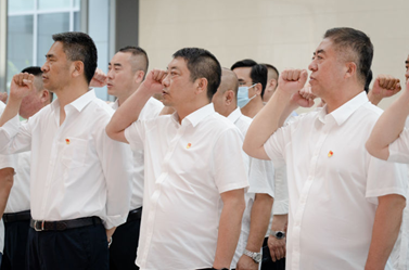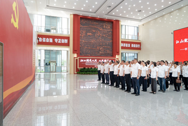 參觀前,參加活動的黨員干部集體面對鮮紅黨旗重溫入黨誓詞。鏗鏘有力的宣誓聲,表達了唐山公交廣大黨員干部對黨忠誠的鄭重承諾,始終不忘初心、牢記使命、聽黨話、跟黨走的堅定決心。